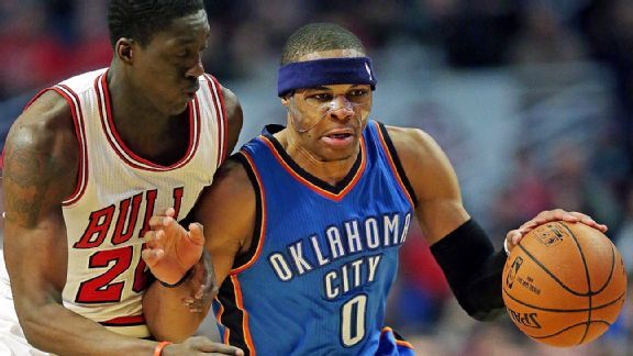 Jonathan Daniel/Getty ImagesRussell Westbrook's 43-point night was not enough to lead the Thunder to victory.| 1960-61 | Elgin Baylor | 4 |