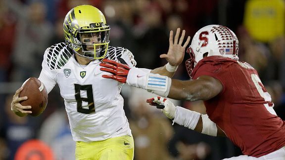 Ezra Shaw/Getty ImagesPressure on Marcus Mariota has been vital to Stanford's ability to contain Oregon's potent offense.