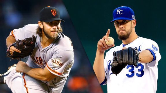 Madison Bumgarner, San Francisco's Game 1 starter, hasn't allowed a run in 15 innings over his first two career World Series starts. Hall of Famer Christy Mathewson is the only pitcher in MLB history to not allow a run in his first three World Series starts.