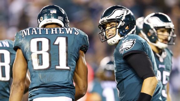 Sanchez has completed 74.0 percent of his passes to Jeremy Maclin and Jordan Matthews this season after Foles completed 55.9 percent of his passes to the duo. Sanchez has especially taken a liking to Matthews, who has caught five of his eight pass touchdowns this season. Matthews had two touchdowns with Foles at quarterback.